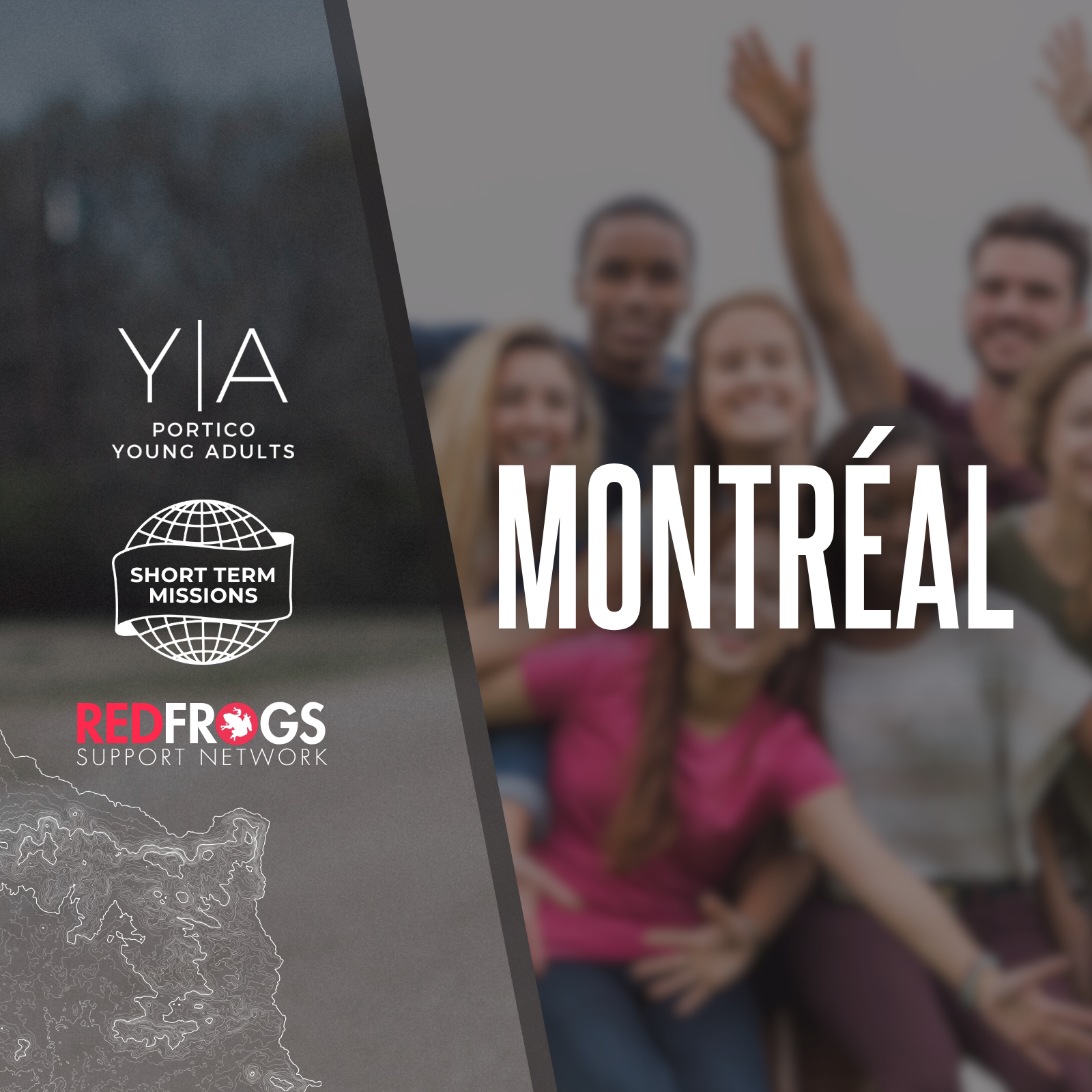 YA Montreal STM Tuesday, August 25, 2026 9:00 AM Monday, August 31, 2026 9:00 PM PORTICO Community Church 1814 Barbertown Road Mississauga, ON, L5M 2M5 Canada (map) Google Calendar ICS This is an STM from August 25-31, 2026 for anyone aged 18-30 years old. We will be headed back to Montreal to partner with Red Frogs Canada as they work to provide safe environments for university aged students during social activities.Application Deadline: May 1Connect with Pastor Benjamin Learn more Learn more